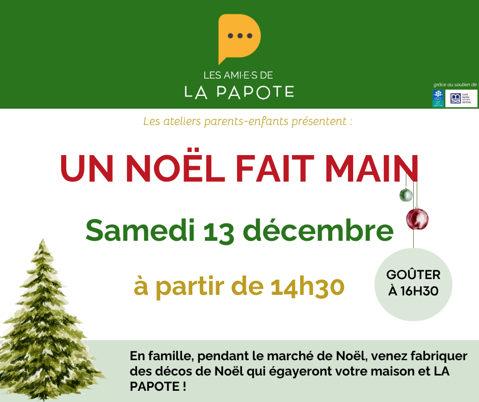 Ce mois-ci : En famille, pendant le marché de Noël de Saint Sulpice, venez fabriquer des décos de Noël !
