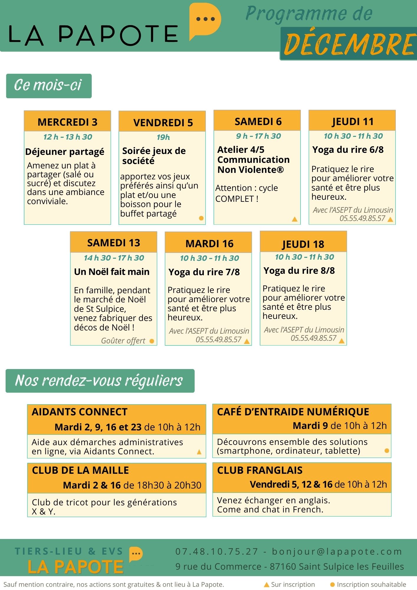 Sur ce planning, vous trouverez toutes les activités régulières et ponctuelles de la Papote.