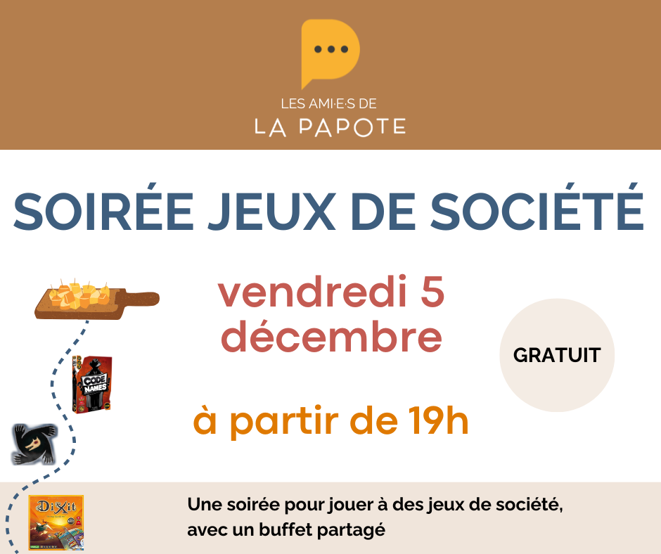 Une soirée pour jouer à des jeux de société, avec un buffet partagé !